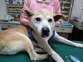 術前の血液検査も異常なく、フィラリアも陰転し、元気食欲もあったので、麻酔も順調で、予想したよりも短時間で手術を終え、夕方、帰りました。写真は、退院前のワンショットです。耳の中からの出血もなくなり、これで、快適な老後をおくれますね。年配の飼い主の方も、とても喜んでいました。とても可愛がっている様子なので、「心配の種」だったのかもしれませんね。