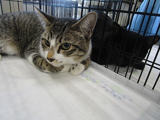 昨年の8月ごろに生まれた兄弟です。お預かりして、隣同士のゲージに入れて、術後も2頭が並んでいます。一緒の方が、なんとなく落ち着いている感じです。仲良しなんでしょうね。もうすぐ、お迎えが来ます。