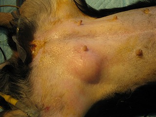 今日のワンコは、以前からヘルニアがあるのは分かっていましたが、エコー検査で脂肪組織だろうと推測していたので、今日の不妊手術と同時に、ヘルニアの整復もすることにしました。