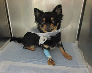 今日のワンコは「繁殖リタイア犬」で、この状態で長く過ごしてきたので、癒着が酷かったのですが、根気よく外していって、当初の目的通り、不妊手術とヘルニアの整復を終えました。